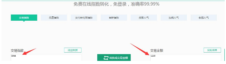 店铺产品销售数据,这个交易指数换算出来的结果。
